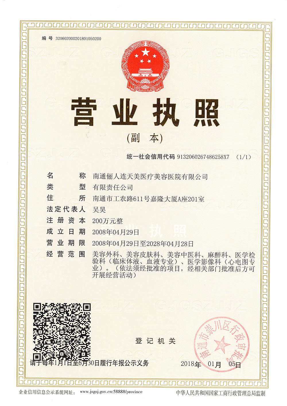 南通儷人連天美醫(yī)療美容醫(yī)院是與著名的醫(yī)療美容集團(tuán)合作建立的醫(yī)院,醫(yī)院提供高品質(zhì)的醫(yī)療美容服務(wù)。2008年,南通儷人連天美醫(yī)療美容醫(yī)院落戶南通,成為由南通衛(wèi)生局審批的專業(yè)醫(yī)療美容醫(yī)院。南通儷人連天美醫(yī)療美容醫(yī)院,特別設(shè)有專業(yè)的整形美容科、皮膚美容科和微創(chuàng)美容科三大科室,致力于為廣大求美者提供全方位的醫(yī)療美容服務(wù)。南通儷人連天美醫(yī)療美容醫(yī)院為求美者建立個人終生美麗檔案,一對一進(jìn)行細(xì)致服務(wù)。 11年來,南通儷人連天美醫(yī)療美容醫(yī)院,不斷引進(jìn)先進(jìn)設(shè)備,不斷完善醫(yī)美技術(shù),一批優(yōu)秀、專業(yè)而穩(wěn)定的醫(yī)生團(tuán)隊(duì),為無數(shù)求美者鑄就美麗夢想。